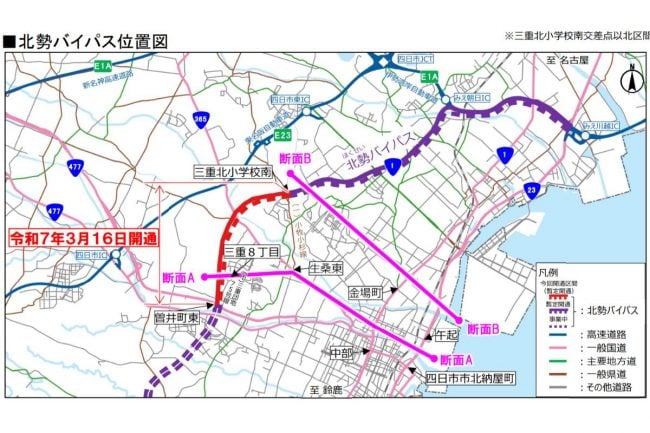 国道1号「北勢バイパス」開通! 「名四渋滞」迂回でみえ川越から伊勢まで直通!? 「南海トラフ」対策&「中部の主要工場地帯」に便利な“すごい道路” 3月開通の効果とは?