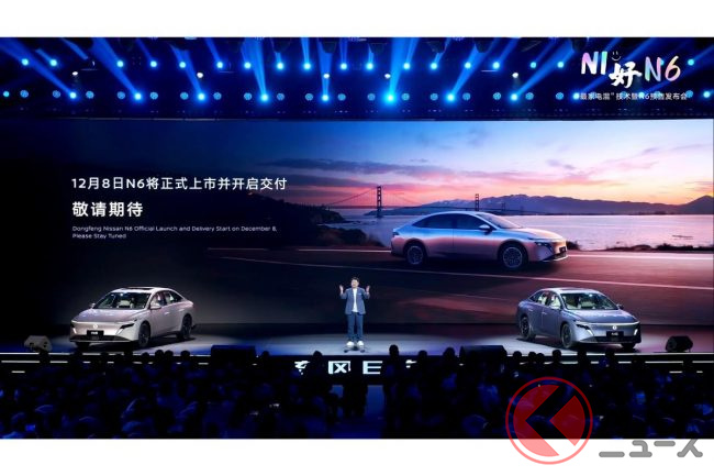 日産の中国合弁会社である東風日産は、2025年12月1日に新型PHEV(プラグインハイブリッド)セダンモデルの「N6」を正式に発表しました。