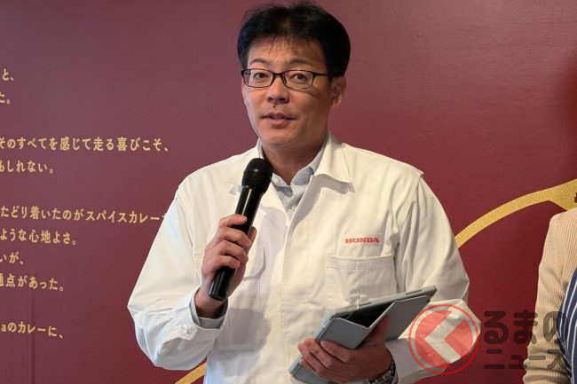 「新型プレリュードの特徴であるHonda S+ Shift(後述)による“6つの走りの味変”を、どうすれば若い世代の方々に分かりやすく伝えられるのかと考え続けてきました。その結果たどり着いたのが、スパイス、そしてカレーという普遍的で身近なテーマでした」と語り、発想の起点が“走りの味わいを食で表現する”ことにあったと説明します。