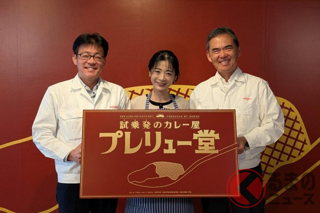 ホンダは、新型「プレリュード」の発売を記念したスパイスカレー屋「プレリュー堂」を渋谷に期間限定でオープンします。初日には先行取材会が開かれ、開発責任者の齋藤氏、宣伝広報の宮本氏、監修を務めたスパイス料理研究家・一条もんこ氏が登壇し、クルマの“走りの個性”をスパイスで表現するという前例のない企画への思いが語られました。