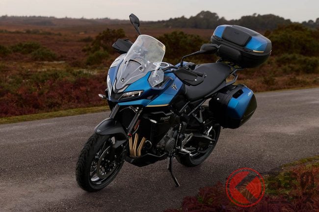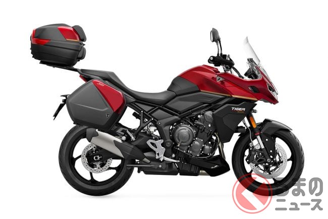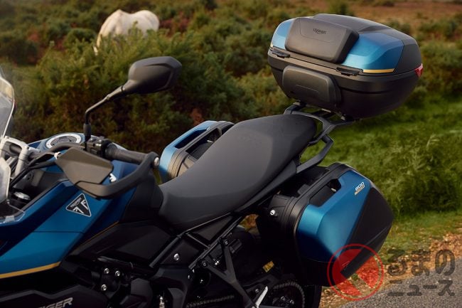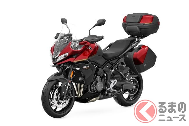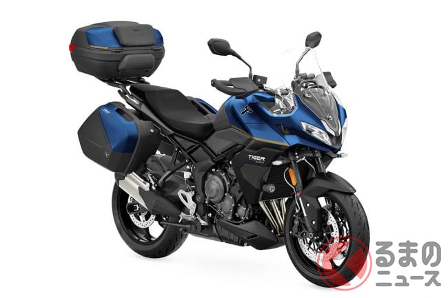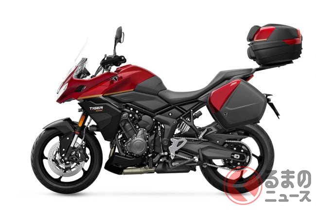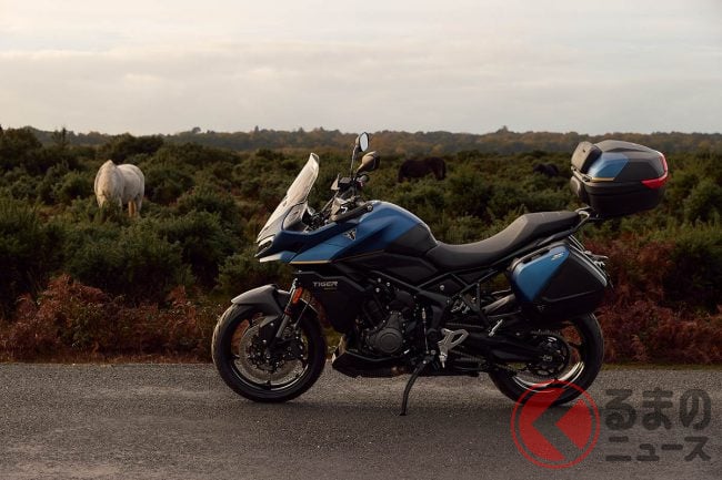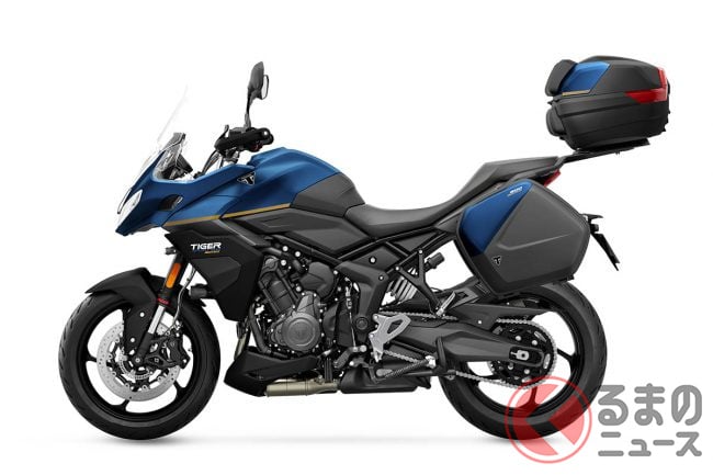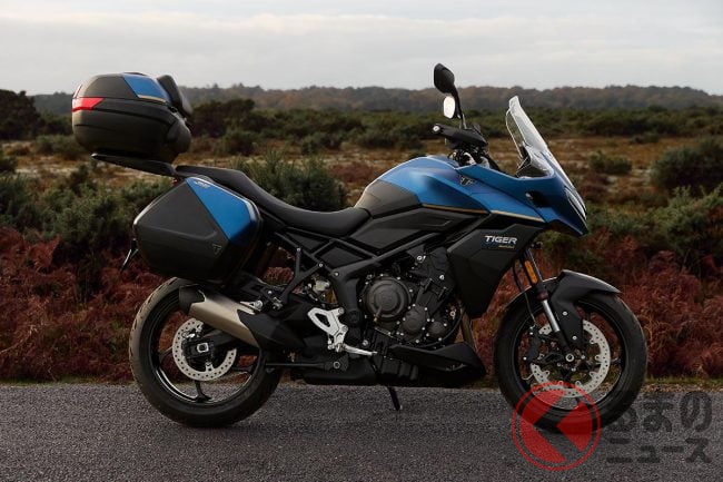 新車160万円! 「“新”スポーツツーリングモデル」発売! 115馬力の「3気筒エンジン」×106L“ラゲッジ”も搭載! 「長距離向き」なトライアンフ「TIGER SPORT 800 TOUR」登場