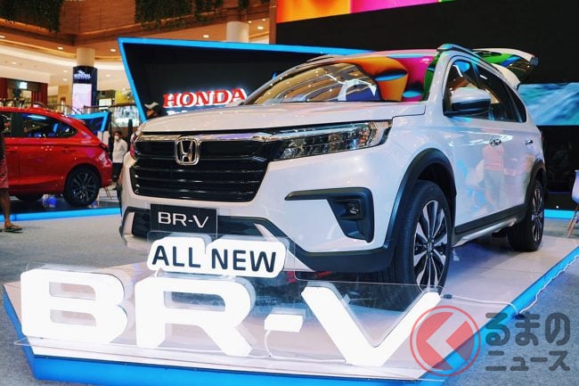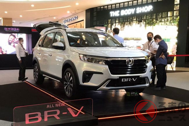ホンダ「“7人乗り”コンパクトSUV」実車公開! 全長4.5mの“イイ感じのサイズ”×大胆すぎる大型グリル採用! MTもある「BR-V」インドネシア仕様とは!