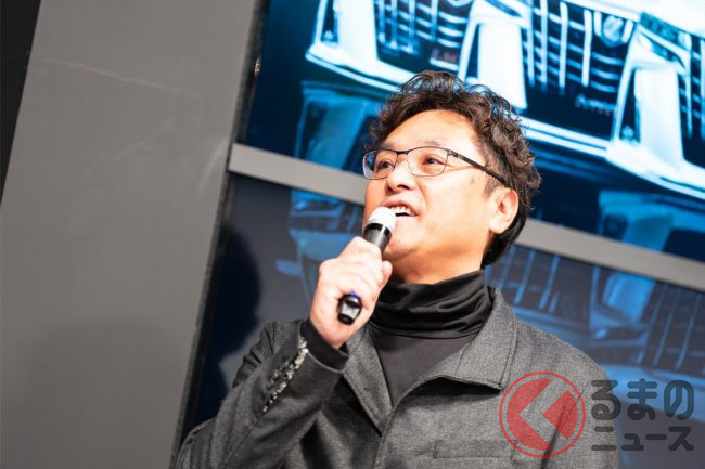 そして発表会場では来年の「東京オートサロン2026」にアドミレイションブランドとして、3台の車両を展示することを発表。2台はすでに発表済となる40系の「アルファード」と「ヴェルファイア」ですが、もう1台はなんとレクサス「LM」用の専用エアロとなるとのことで、デザインイメージが初公開されました。