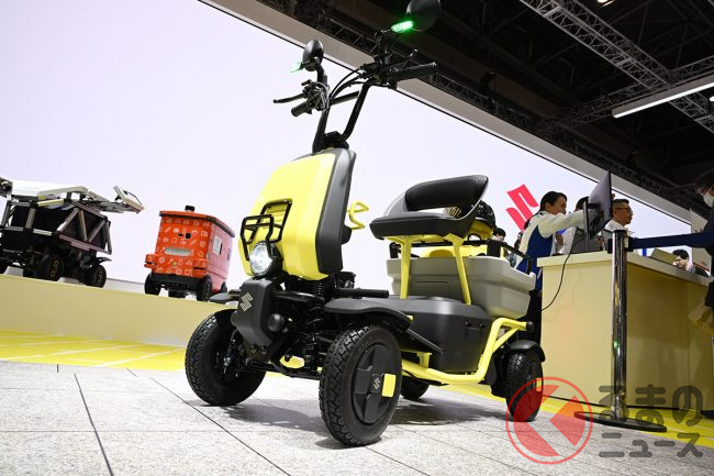 スズキの「免許不要の“ちいさい軽トラ”!?」に熱視線! おひとりさま向け超小型ボディ×安定感バツグンの4輪走行可能! 使い勝手サイコーな荷台がスゴい「スズカーゴ」とは!