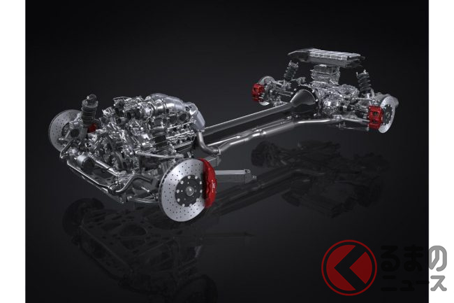 パワーユニットは新開発の4リッターV型8気筒ツインターボエンジンに1モーターを組み合わせるハイブリッドで、システム出力650馬力以上・最大トルク850Nm(いずれも開発目標値)を発生。駆動方式はFRです。