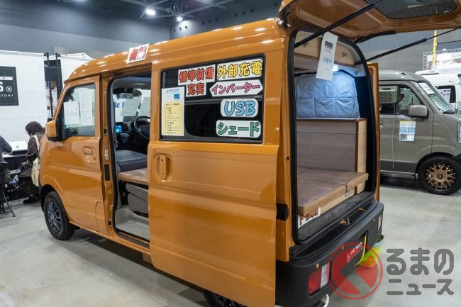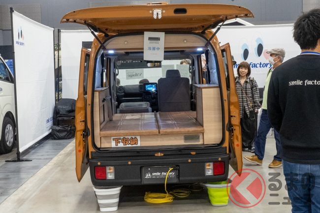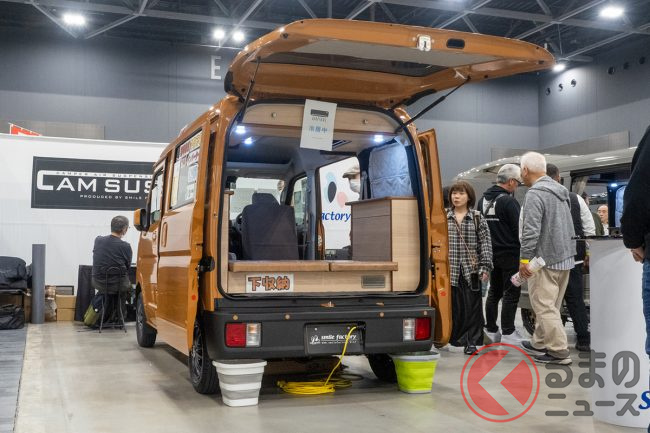 スマイルファクトリーはスズキ「エブリイ」をベースにしたキャンピングカーである「オフタイム ヴィレージュ」を「福岡キャンピングカーショー2025」で展示しました。