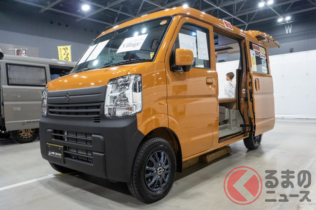 会場ではスズキ「エブリイ」をベースにした「オフタイム ヴィレージュ」を展示し、注目を集めています。