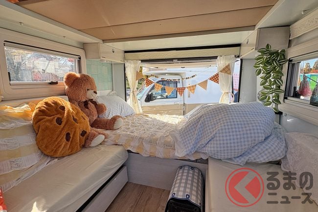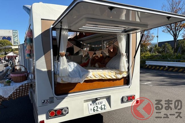 「お台場キャンピングカーフェア2025」にて、アウトドア系インフルエンサー“さおりんご”さんの愛車である「くまちゃん号」が実車展示されていました。どのようなクルマなのでしょうか。