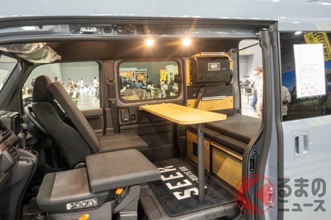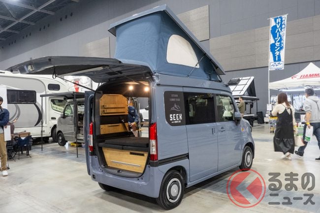 ルートシックスは、ホンダの軽バン「N-VAN」をベースにした軽キャンピングカー「SEEK POP(シーク ポップ)」を「福岡キャンピングカーショー2025」で展示しました。