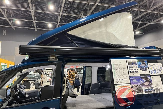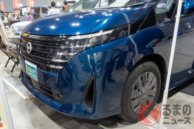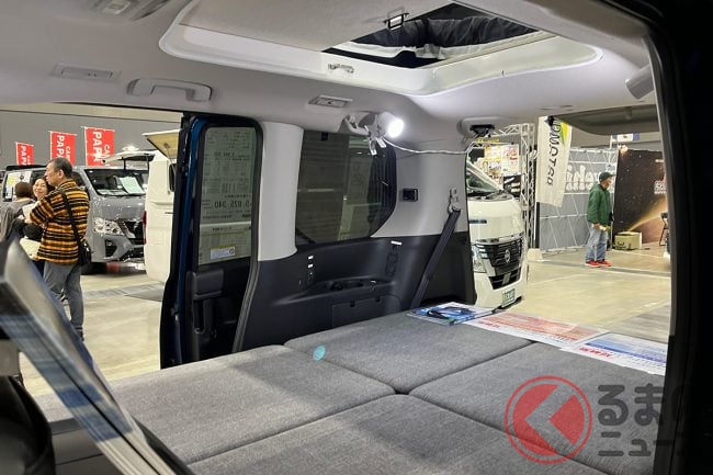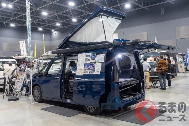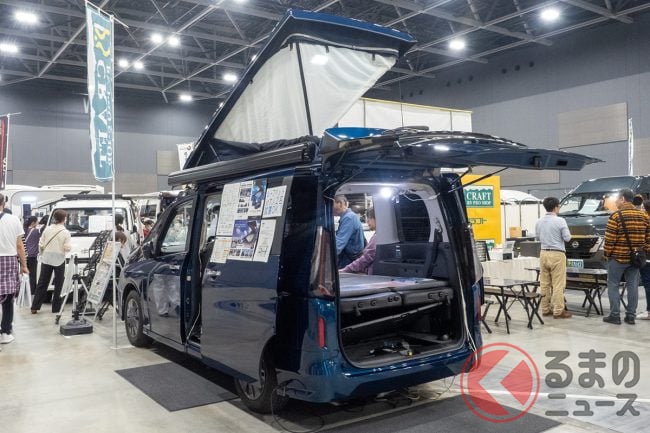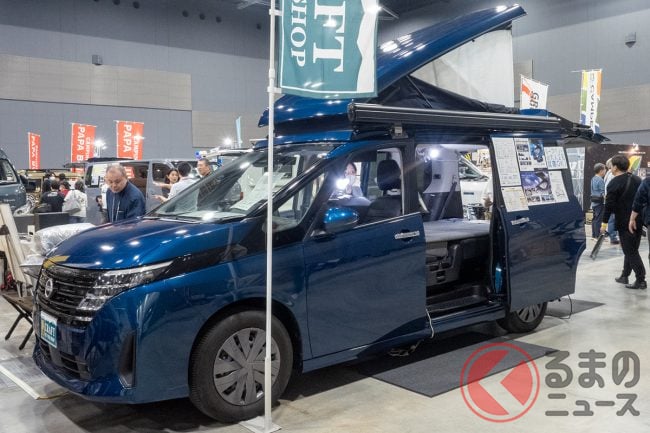 日産ピーズフィールドクラフトは、人気ミニバンの日産「セレナ」をベースにしたキャンピングカーを「福岡キャンピングカーショー2025」で展示しました。