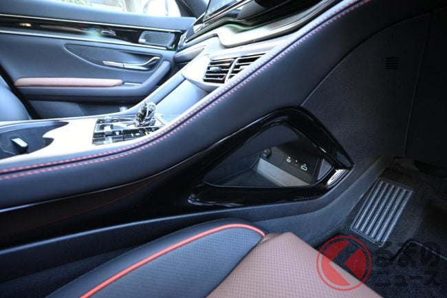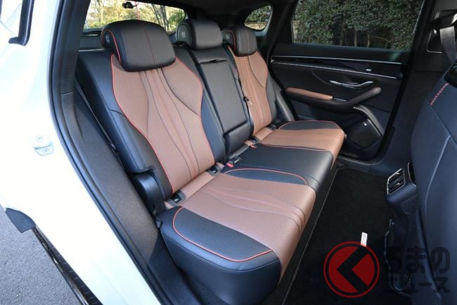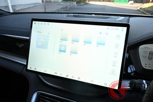 ちょっと盛り込みすぎくらいの内容で、シート表皮こそ本革ではなく合皮だけど、装備水準的にはライバルたちの上級グレードに匹敵する水準だ。ちなみにインフォテイメントシステムはアプリを追加することで車内にてカラオケができ、マイクはディーラーオプションとして用意している。