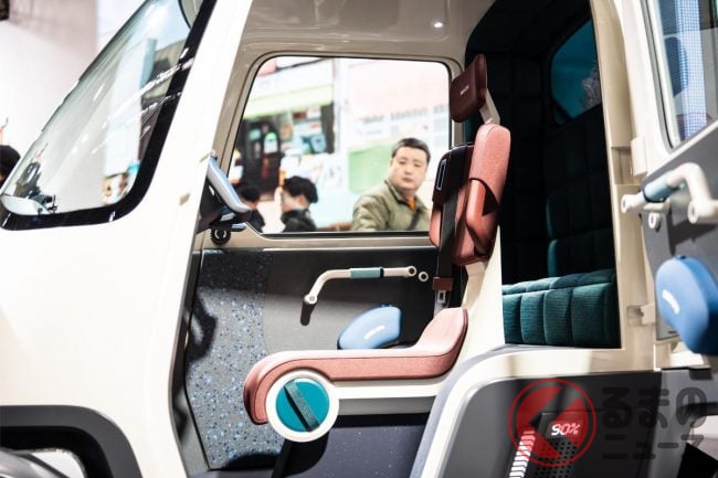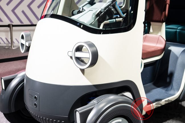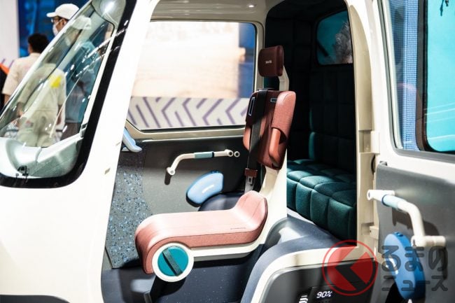 2025年10月下旬より開催されたジャパンモビリティショー(JMS)では、中央に運転席を置き、左右に少しずらして後席を配置することで大人1人+子ども2人の乗車を想定。インテリアもオレンジや青、緑といったポップなカラーで構成され、遊び心のある空間が演出されていました。
