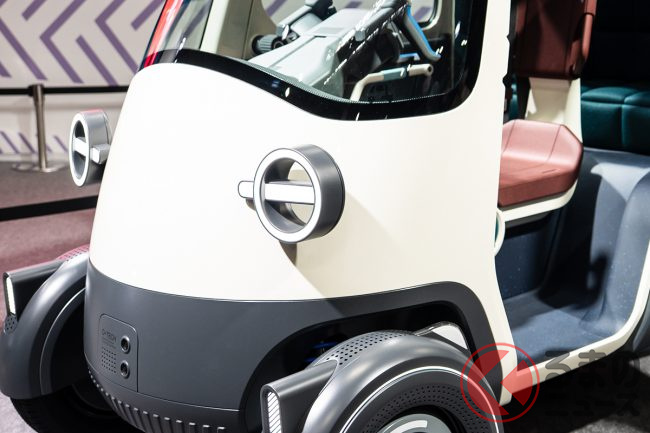 全長2200mm×全幅1295mm×全高1680mmというコンパクトな寸法に、丸目ライトとシンプルなボディラインを組み合わせ、往年のミゼットらしさを残しつつ現代的なデザインへと進化しました。