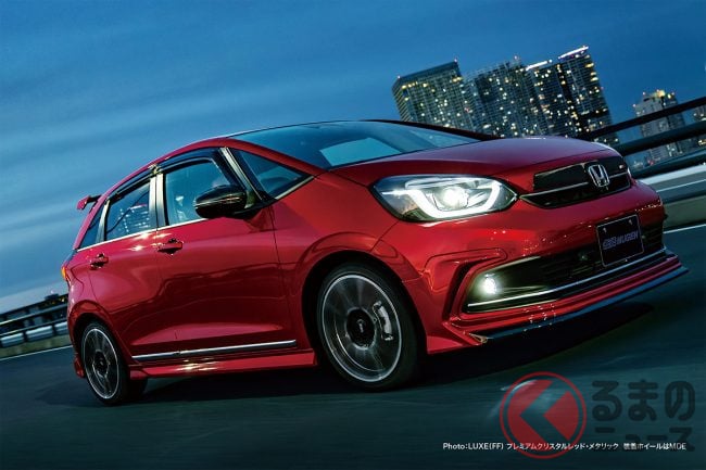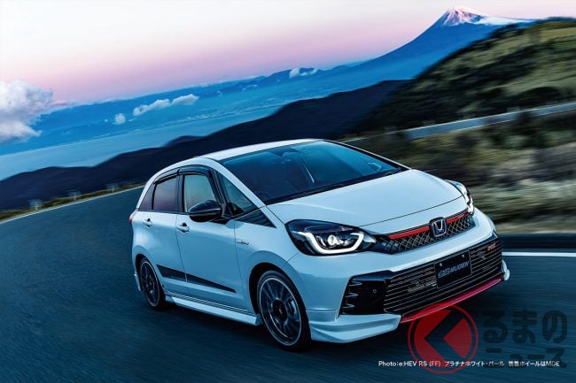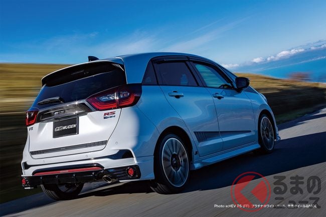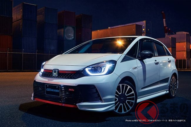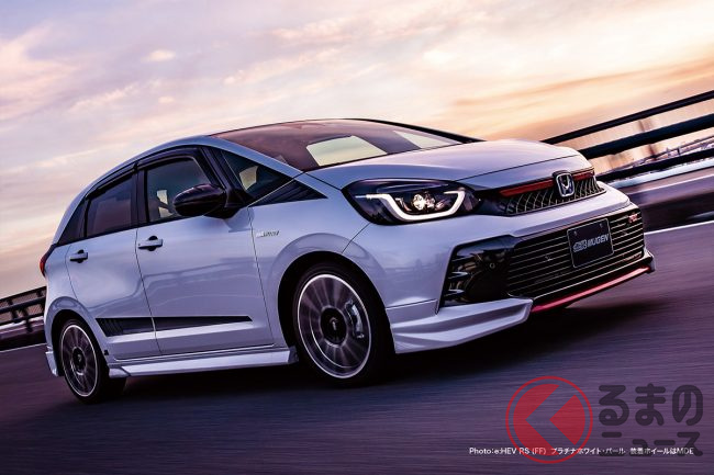 ホンダ「全長4m級コンパクトカー」“超スポーティ仕様”に注目! ワイド感強めな「エアロ」で超カッコいい! スゴい「バイザー」もある「“無限”フィット」カスタマイズアイテムとは