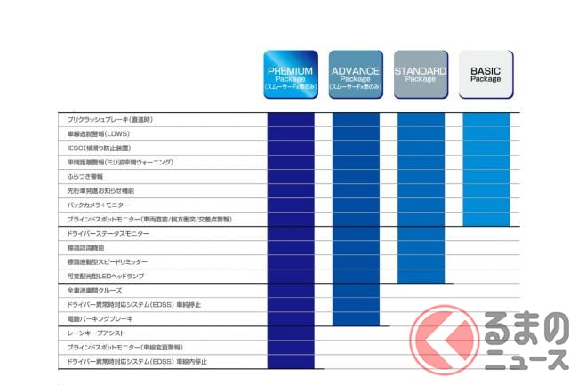 先進機能では、プリクラッシュブレーキや左折巻き込みブレーキを全車に標準装備。レーンキープアシストに側方衝突抑制機能を追加し、安全性能の向上を図りました。