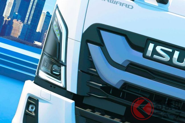 1500万円超え! いすゞ「“新”フォワード」発表! パワフル「3リッターエンジン」に9速DCT搭載! 斬新ワールドクロスフロー顔採用の「中型トラックの定番モデル」改良し発売