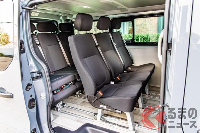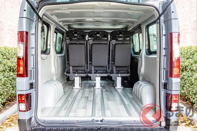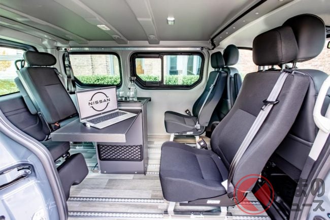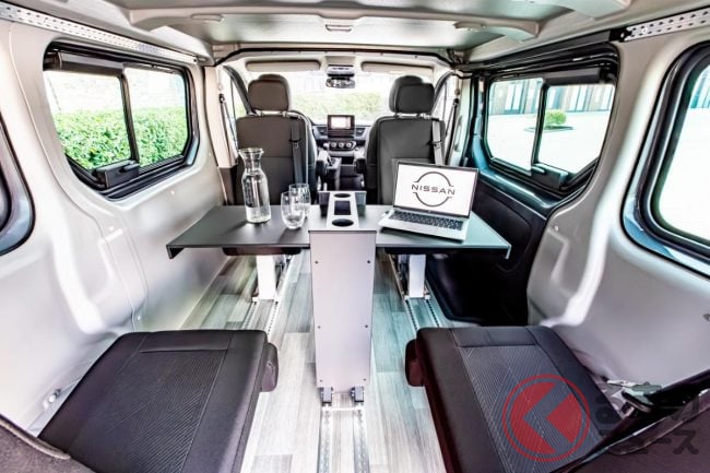 日産“新”「“2人-8人乗り”ミニバン」公開! カクカクボディ&2リッター「直4」ディーゼル採用! MT設定もある“超柔軟モデル”「プリマスターフレックスバン」独国に登場