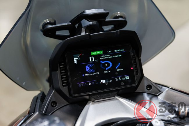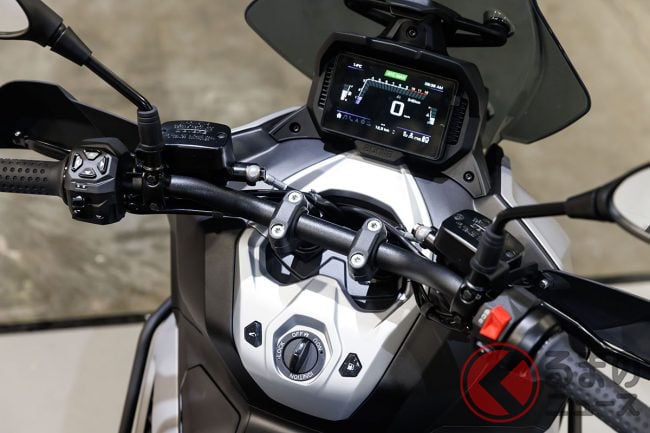 各種情報は5インチのカラーTFTディスプレイで確認・管理ができます。快適性も追求されており、アクティブなライディングポジションと5段階調整式のウインドスクリーンが長距離ツーリングを支援します。さらに、キーレスシステム、フルフェイスヘルメットが収まるシート下収納、モバイル機器の充電に便利なUSB-Cソケットなどが標準で備わっています。