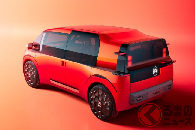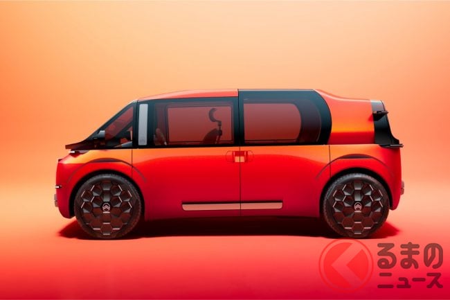 全長4.1mの新「ちいさな“6人乗りミニバン”」公開! ガバッと開く“大口スライドドア”×斬新「1+2+3」レイアウト採用! 運転席が「真ん中」のシトロエン「ELO」登場