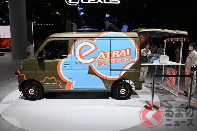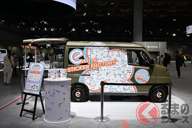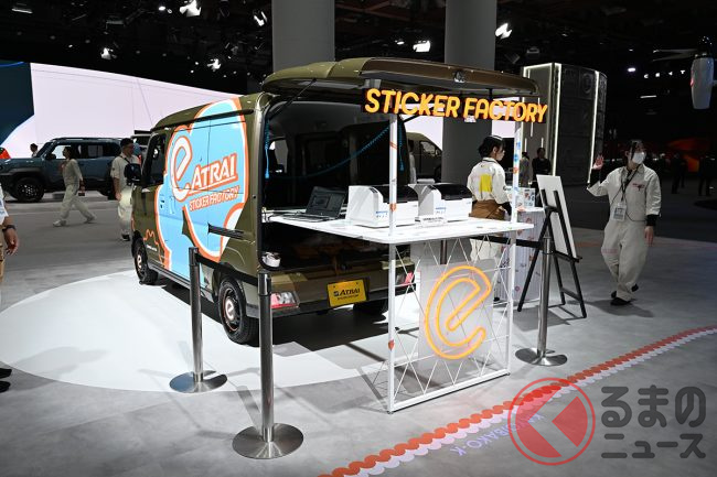 ステッカーを印刷するためのプリンターを動かす電気を供給していたのが、世界初公開となったダイハツの新型モデル「eアトレー」だったのです。