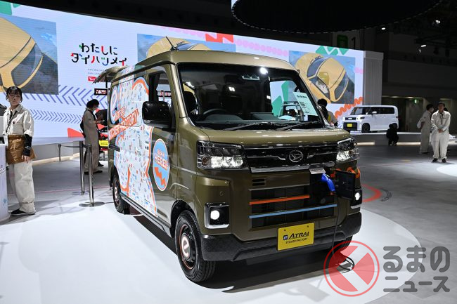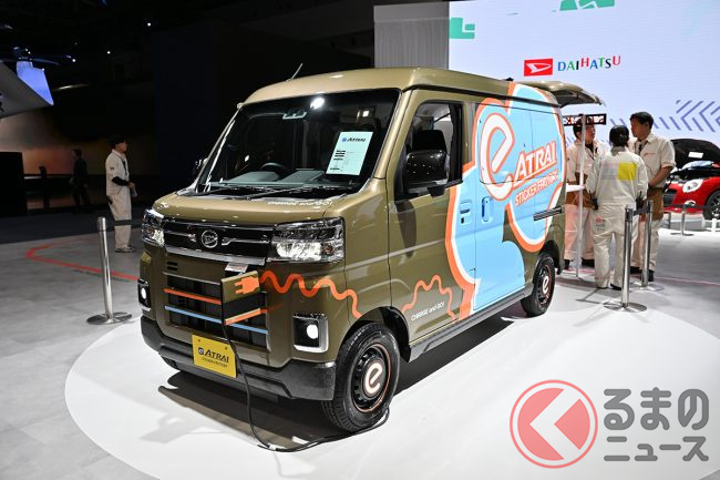 ダイハツの新型「“スゴい”軽バン」まもなく発売! 全長3.4m級「めちゃ扱いやすいサイズ」に「超・静音パワトレ」搭載! シレっと実車公開されていたニューモデル「eアトレー」とは