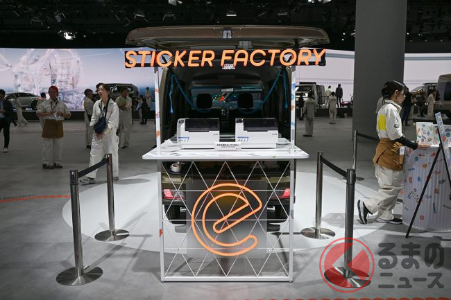 2025年10月29日から11月9日まで開催された「ジャパンモビリティショー(JMS)2025」のダイハツブースでは、「町のステッカー屋さん」として、その場で車体に貼るステッカーや、持ち帰りできるステッカーを配るという体験型イベントが行われていました。