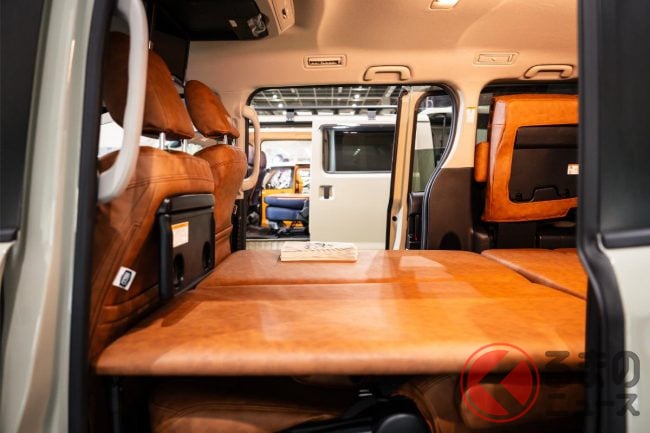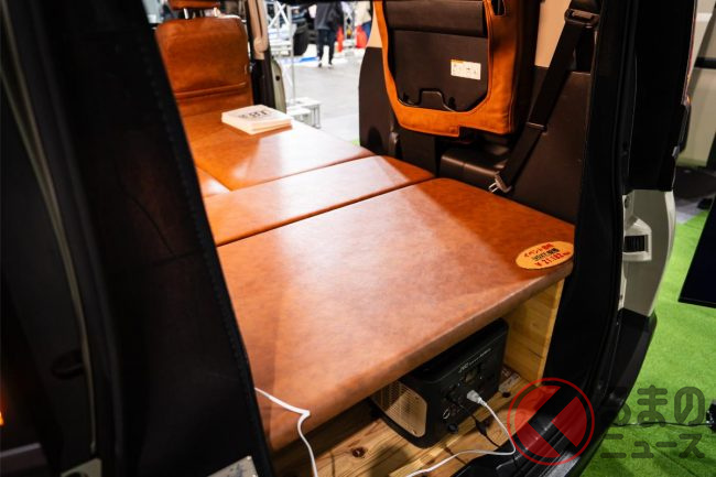 内装面ではシートカバーや専用ベッド、蚊帳を備えており、車中泊やアウトドアにもすぐ展開できる仕様です。普段使いのしやすさとレジャーでの併用性を両立させることを重視しました」