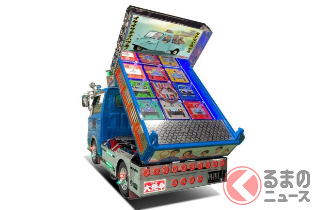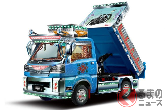 「世代を超えて、人の輪を繋いで笑顔に」という想いが込められたこのモデルは、いわゆる“デコトラ”風のド派手な架装が特徴です。
