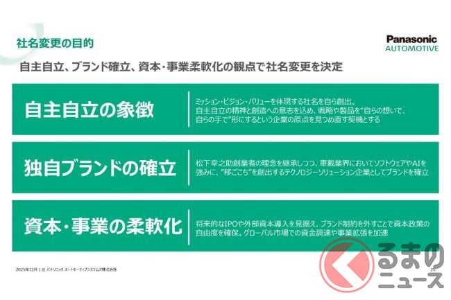 パナソニックオートモーティブシステムズは2025年12月16日都内で会見を行い、2027年4月1日付で社名を「モビテラ」に変更すると発表しました。