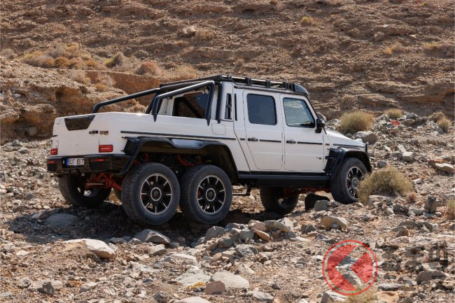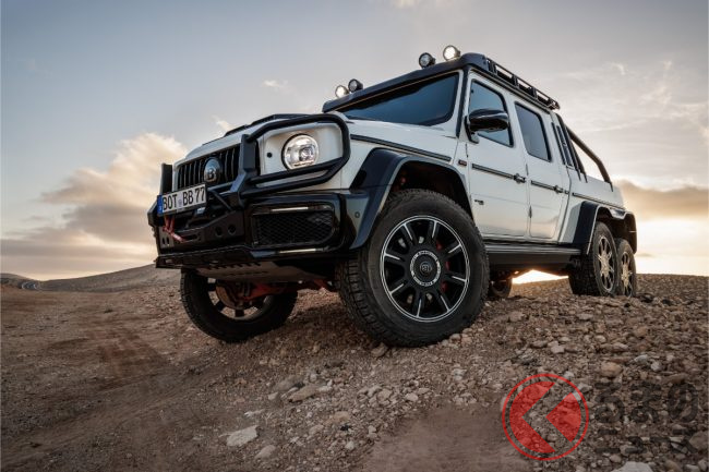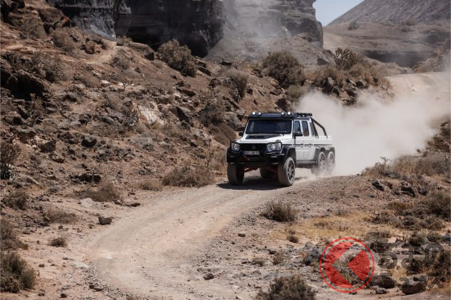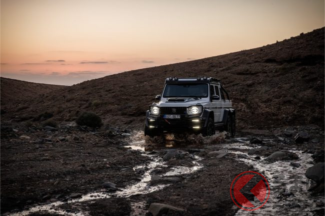 この巨体を支える足まわりには、ブラバスが誇る最新のサスペンション技術が投入されました。3つのアクスルすべてに「ポータルアクスル」を採用することで、最低地上高は驚異の473mmを確保。岩場や泥道など、あらゆる悪路をものともしない圧倒的な走破性を実現しています。