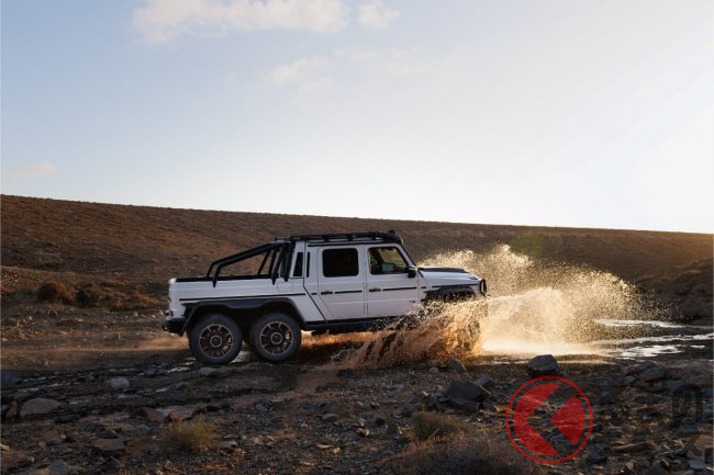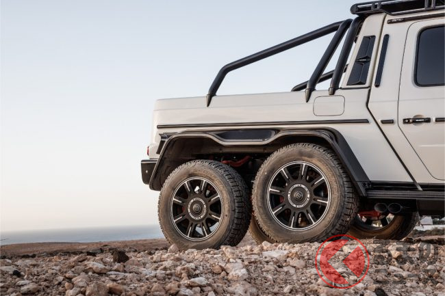 この強大なパワーは9速ATを介して6つの車輪すべてに伝えられ、車両重量が3670kgにも達する巨体ながら、0-100km/h加速は5.8秒をマークします。なお、最高速度はタイヤの保護を考慮して210km/hに制限されています。