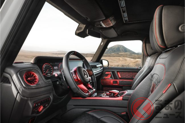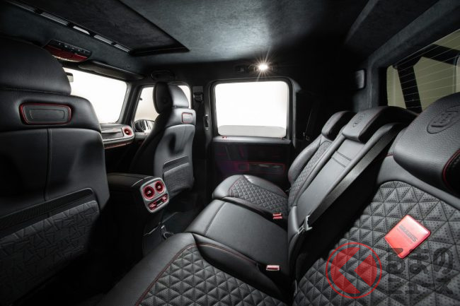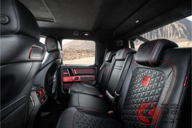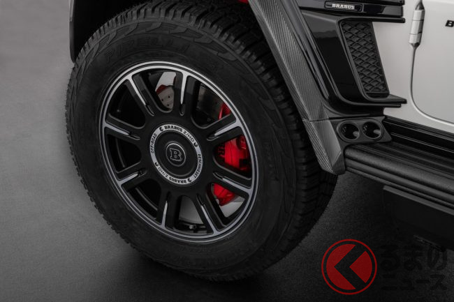 ホイールには、このモデルのために開発された22インチの「ブラバス モノブロック Z/HD」鍛造ホイールを装着。8スポークデザインの屈強なホイールに、325/55R22サイズの大径オールテレーンタイヤを組み合わせることで、強烈な視覚的インパクトと機能性を兼ね備えました。
