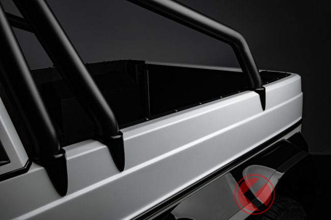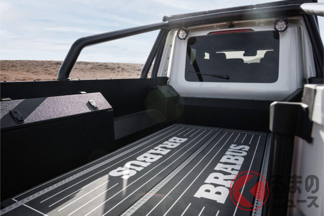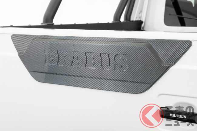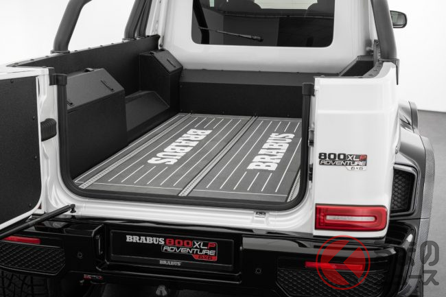 通常のG63よりもさらに長くなったボディの後半部分は、広々とした荷台(ベッド)を持つピックアップトラックスタイルに変化。荷台の内側は耐久性に優れたカーボンパネルで覆われており、実用性と高級感を両立させています。