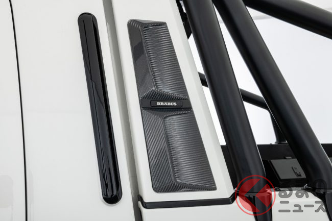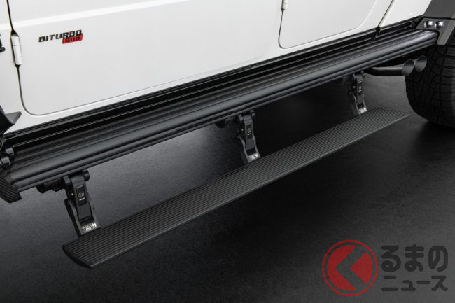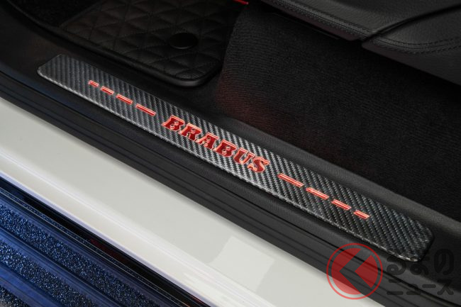 また、ボンネットやフェンダー、サイドステップなど随所にカーボンパーツを多用することで、スポーティかつラグジュアリーな雰囲気を強調。特に、マットブラックのダブルBロゴが輝くフロントグリルや、ボディサイドに配置された電動格納ステップは、所有する満足感を高めるディテールといえるでしょう。