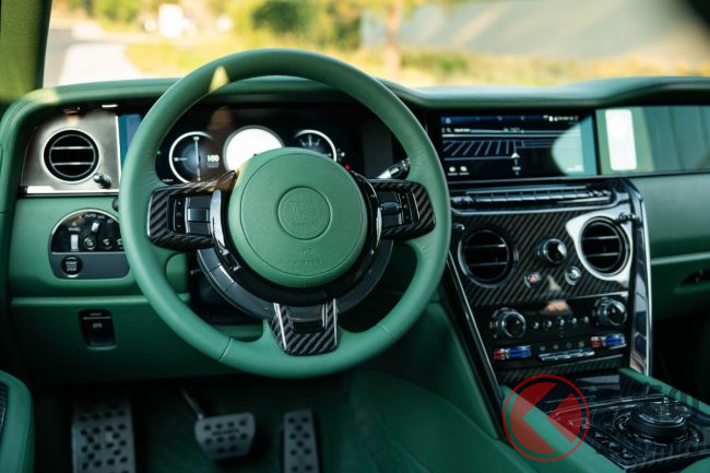 また、ロールス・ロイスの特徴であるクロームパーツはすべてブラック仕上げに変更され、威厳あるフロントマスクをよりスポーティに引き締めるなど、細部まで徹底したこだわりが貫かれました。