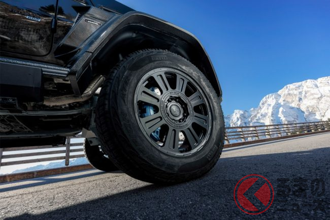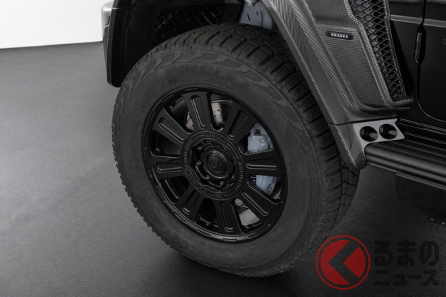 ホイールには、このモデルのために開発された22インチの「ブラバス モノブロック HD」ホイールを装着。8穴デザインの屈強なホイールに、325/55 R22サイズの大径オールテレインタイヤを組み合わせることで、強烈な視覚的インパクトと機能性を兼ね備えました。
