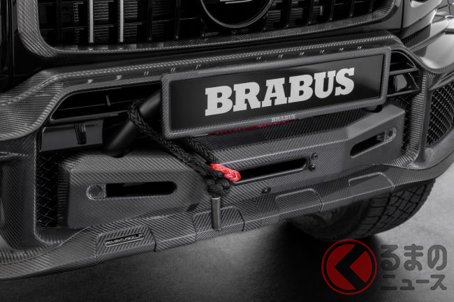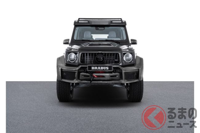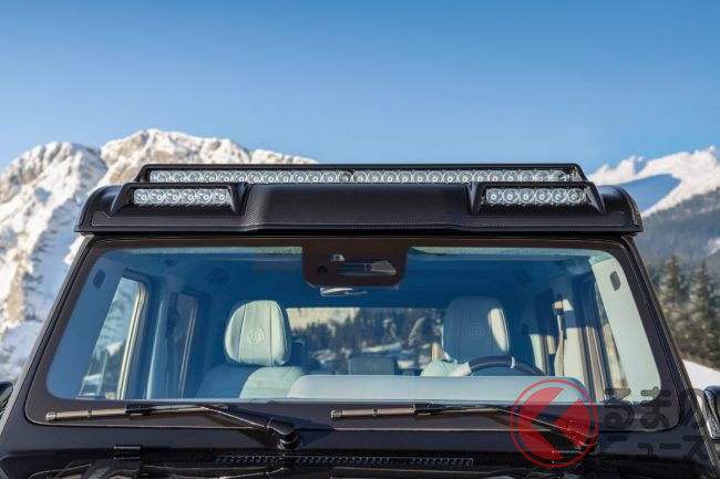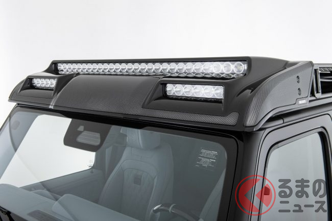 エクステリアは、ブラバスらしい「アドベンチャー」な装備で武装されています。フロントバンパーにはウインチ(最大牽引力4500kg)を内蔵し、ルーフには風切り音を抑えるデフレクター機能付きのLEDライトバーを装備。