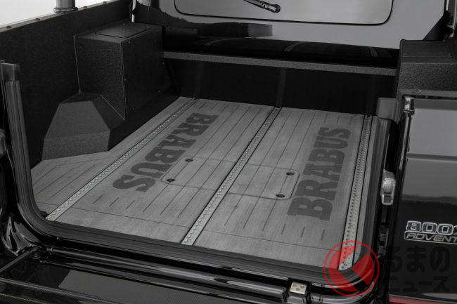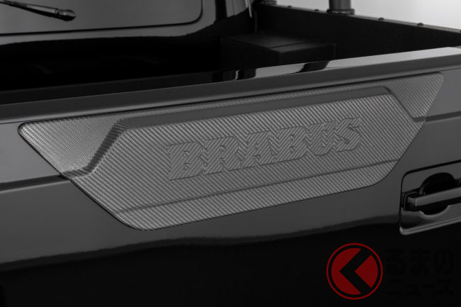 新たに設けられた荷台の内側は、ブラバスのマリンボートでも使用される耐久性の高い「ソフトチーク」材で覆われており、カーボン製のボディパネルと相まって実用性と高級感を両立させています。