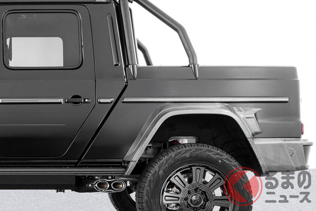 そのスタイリングは、まさに圧巻の一言。ブラバスのエンジニアたちは、ベース車両のラダーフレームをただ延長するだけでなく、リアアクスルを後方へ移動させるための専用フレームモジュールを開発。ホイールベースを500mm延長することで、後部に独立した荷台(ピックアップベッド)を持つスペースを確保しています。