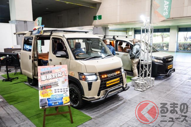 なかでも、今回披露されたマウントエースは、トヨタ「タウンエース バン」をベースに、SUVライクな外観とリフトアップ仕様を組み合わせ、アウトドア志向のデザインへと仕上げられました。車両の特徴について、担当者は以下のように話します。