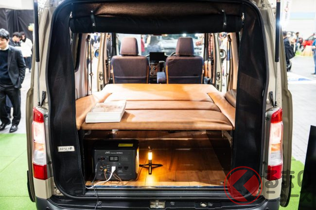 商用バンをベースにしながらも、家族や仲間と過ごす時間を意識した一台として仕上げられたマウントエースは、会場でも注目を集めていました。