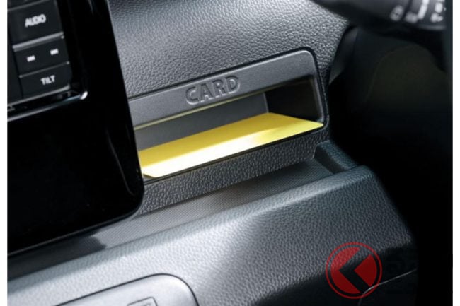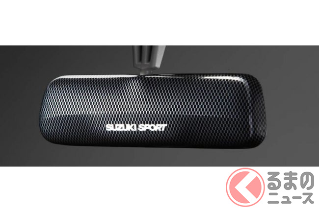 インテリアに装着するのは、インパネガーニッシュ(2万7830円)、インパネトレー(5830円)、革調シートカバー(6万500円)、フロアマット<リップル>(2万2770円)、ルームミラーカウル(1万1000円)の5種。インパネガーニッシュは、ブラックを基調としつつもルーバー部にサテンレッドを採用して、インパネ全体をアグレッシブな印象にまとめます。