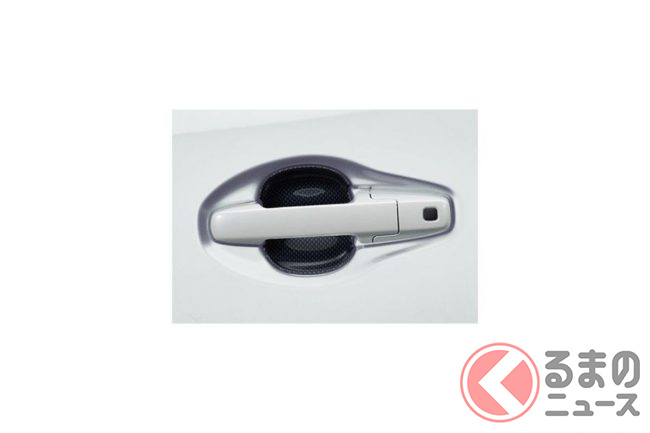 ドアハンドルエスカッションとフューエルリッドガーニッシュは、カーボンルックなデザインとなっており、ブルーイッシュブラックパール3塗装のドアミラーと合わせて、ブラックアクセントパッケージ全体の印象が単調なものとなることを防ぎます。