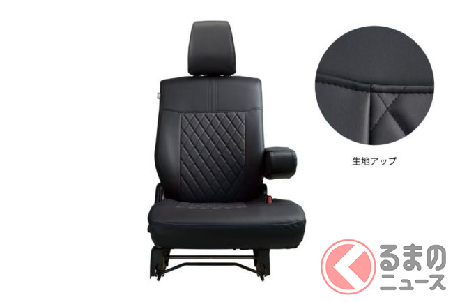 革調シートカバーは、運転席、助手席、後席に対応。PVC素材で作られたブラックのシートで高級感を演出します。なお、シートカバーは運転席と助手席は背裏までカバーしており、後席は背裏までカバーしていないとのこと。また、シートバックポケット、シートカバー、ラゲッジマット(シート背裏あり)と同時装着はできないほか、ECSTARエアコーデは施工不可となっています。