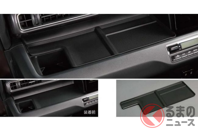 インパネトレーは助手席側に取り付けられるシリコン製パーツで、基本モデルとは形状が少し異なり、区画を分けるように設けられた凹凸で利便性を向上させます。