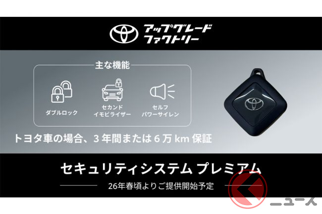 2025年12月18日、トヨタとKINTOは、既販車向けのオプション後付けサービス「UPGRADE SELECTIONS by KINTO FACTORY」の名称変更を発表。同時に、社会問題化している“自動車盗難”に対応した「新たなセキュリティアイテム」の販売を開始しました。そこには一体どのような狙いがあるのでしょうか。