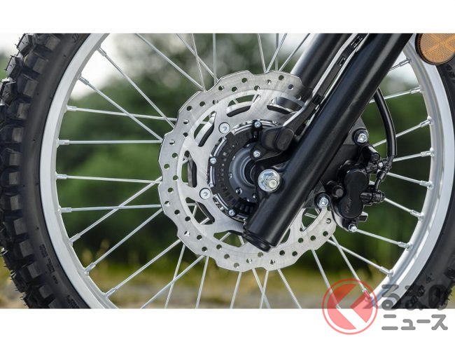 フロントにはABSも装備されており、舗装路での安全性を担保しつつ、滑りやすい路面でもコントロールしやすい制動フィーリングを追求しています。