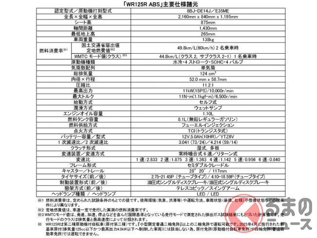 2025年12月18日、ヤマハは原付二種クラスに属する新型オフロードバイク「WR125R ABS」を発表し、2026年1月30日より国内市場にて販売すると発表しました。