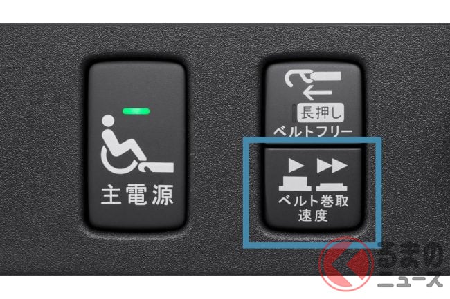 車いす固定には電動ウインチとベルトを組み合わせ、介助者の負担を軽減しつつ安定した固定を可能にしています。モーターの力を活かした強固な固定により、走行中の横揺れも抑えられるよう設計されています。