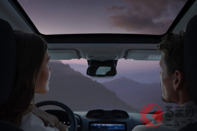 これは2枚の大型パネルで構成され、前部のサンシェードは電動開閉、後部は固定ガラスとなっており、どの席に座っても広大な空を見上げることができる圧倒的な開放感をもたらします。